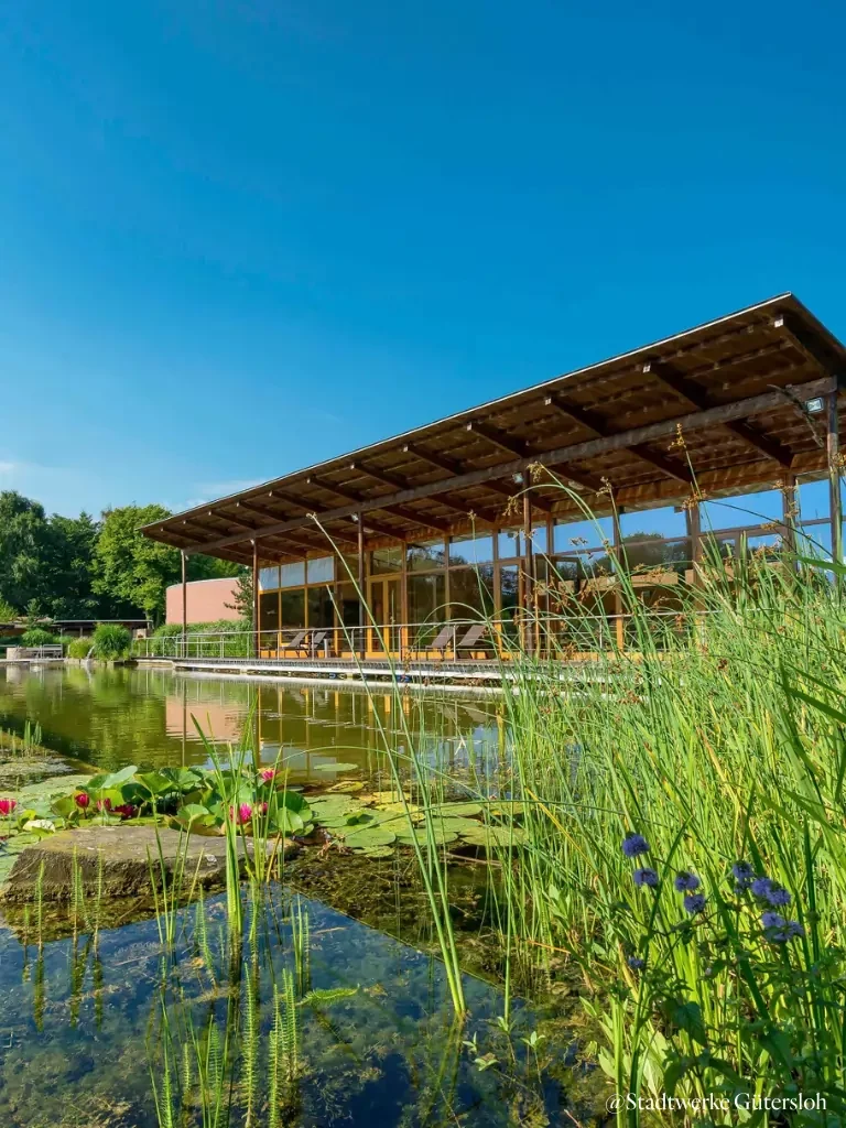 The Gütersloh JärveSauna offers a short break for body and soul. In the beautifully designed facility with its diverse premium sauna landscape, you can breathe in and out. Sauna sessions at a feel-good temperature, refreshment in the idyllic outdoor area and in the natural bathing lake or special feel-good treatments using various massage techniques, wellness treatments and beauty treatments – everyone feels at home in the wellness and sauna oasis.